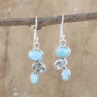 Sterling Silver Dangle Earrings with Larimar and Blue Topaz 'Trendy Trio' Item ID: 2671787111