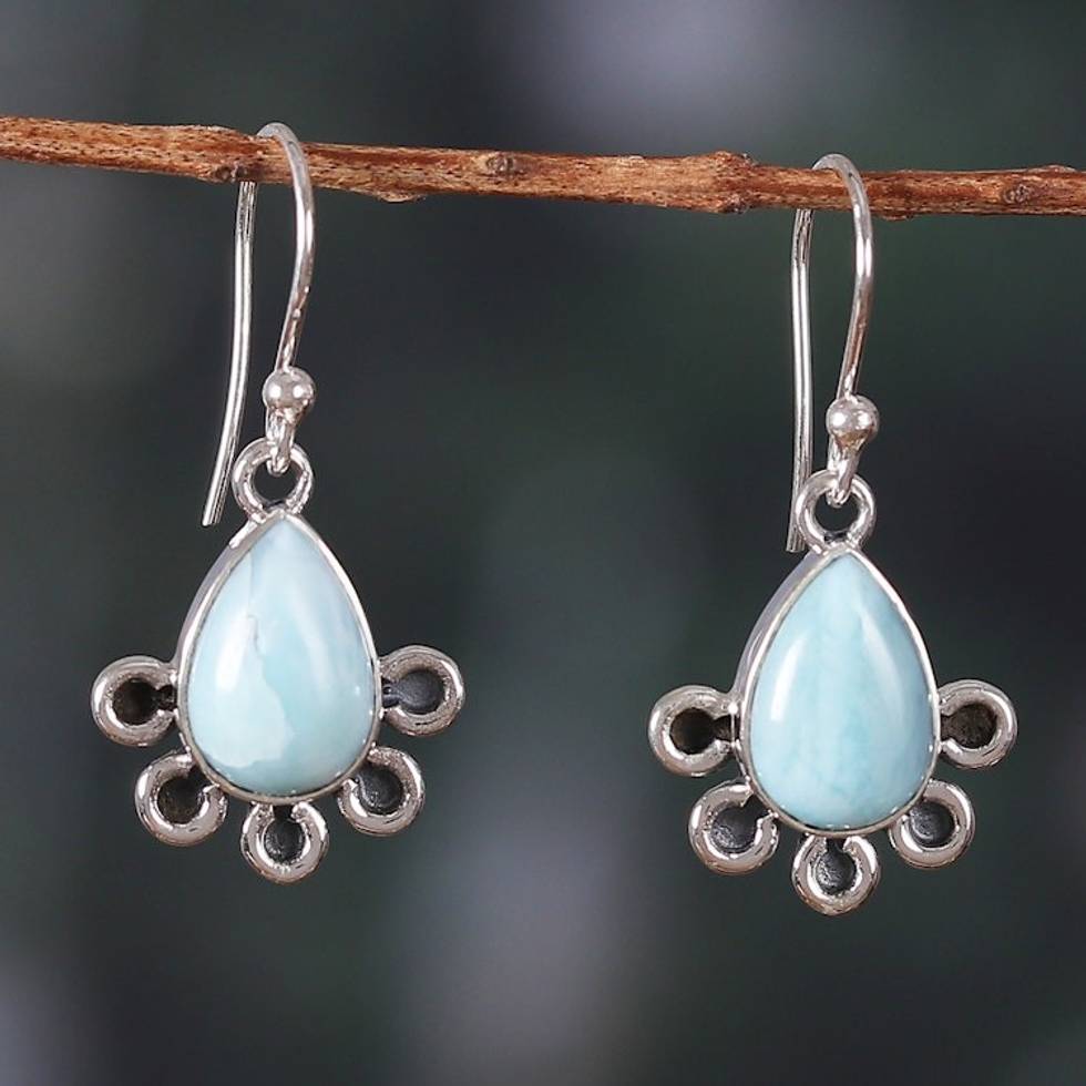 Sterling Silver Dangle Earrings with Larimar Stones 'Exotic Magnetism' Item ID: 2671783251