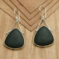 These earrings are spectacular: large, artful, magnificent. I was truly surprised at the detail and flowing beauty that went into the silverwork. The shiny silver against the blackness of the stone makes these so eye-catching. Stunning earrings that would be inexpensive at twice the price.