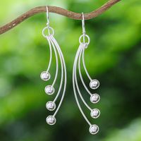 Sterling Silver Dangle Earrings with Modern Design 'Rain of Glances' Item ID: 2671798081