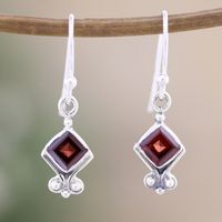 Sterling Silver Dangle Earrings with Natural Garnet Stones 'Adorable Passion' Item ID: 2671786492