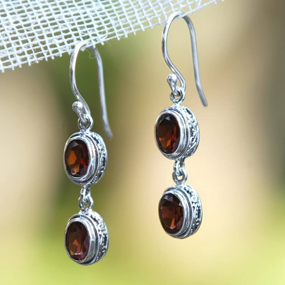 Sterling Silver Dangle Earrings with Natural Garnet Stones 'Faith of Love' Item ID: 2671765558