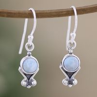 Sterling Silver Dangle Earrings with Natural Larimar Stones 'Serene Love' Item ID: 2671786656
