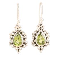 Sterling Silver Dangle Earrings with Natural Peridot Stones 'Green Intricacy' Item ID: 2671786892