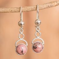 Sterling Silver Dangle Earrings with Natural Rhodonite Beads 'Infinite Warmth' Item ID: 2671770479