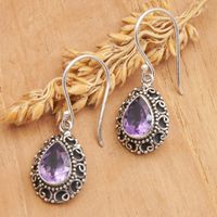 Sterling Silver Dangle Earrings with One-Carat Amethyst Gems 'Luxurious Winds in Purple' Item ID: 2671764999
