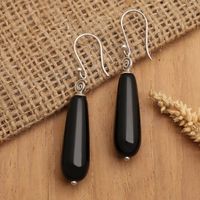 Sterling Silver Dangle Earrings with Onyx Stone from Bali 'Intrepid Woman' Item ID: 2671763170
