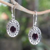 Sterling Silver Dangle Earrings with Oval Garnet Gemstones 'Wonderful Red' Item ID: 2671764522