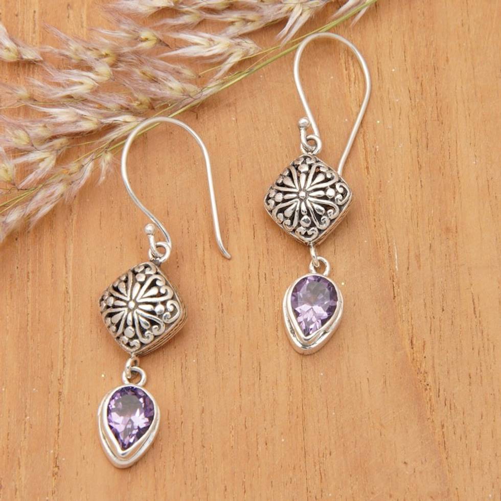 Sterling Silver Dangle Earrings with Pear Amethyst Gemstones 'Heavenly Lilac' Item ID: 2671765648