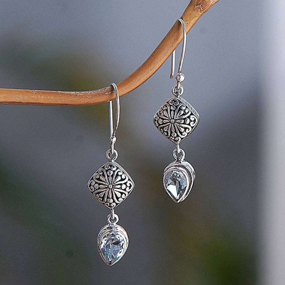 Sterling Silver Dangle Earrings with Pear Blue Topaz Stones 'Heavenly Azure' Item ID: 2671765589