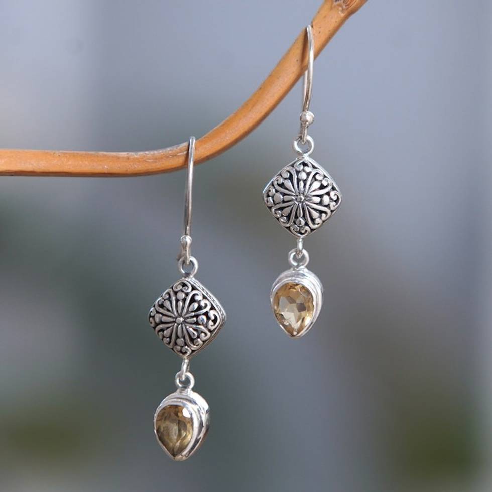 Sterling Silver Dangle Earrings with Pear Citrine Gemstones 'Heavenly Yellow' Item ID: 2671765417