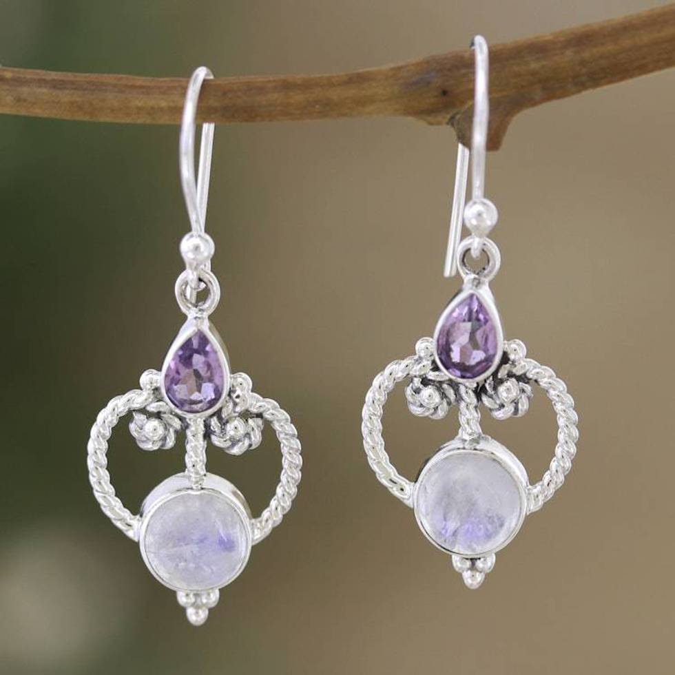 Sterling Silver Dangle Earrings with Purple Gemstones 'Purple Mansion' Item ID: 2676663999
