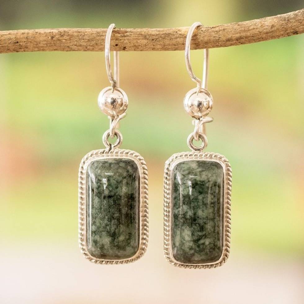 Sterling Silver Dangle Earrings with Rectangular Jade Stones 'Geometric Vitality' Item ID: 2671769421