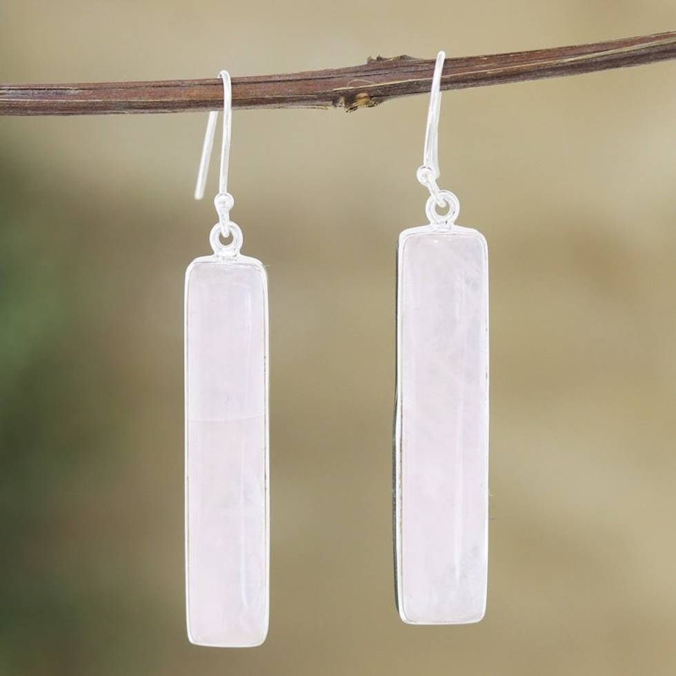 Sterling Silver Dangle Earrings with Rose Quartz Cabochons 'Monument of the Loving' Item ID: 2671786803