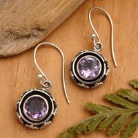 Sterling Silver Dangle Earrings with Round Amethyst Stone 'Batur in Purple' Item ID: 2671763981