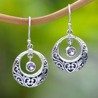 Sterling Silver Dangle Earrings with Swaying Amethyst Stone 'Baturiti Garden in Purple' Item ID: 2671763367