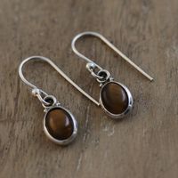 Sterling Silver Dangle Earrings with Tiger's Eye Cabochons 'Luminous Courage' Item ID: 2671786709