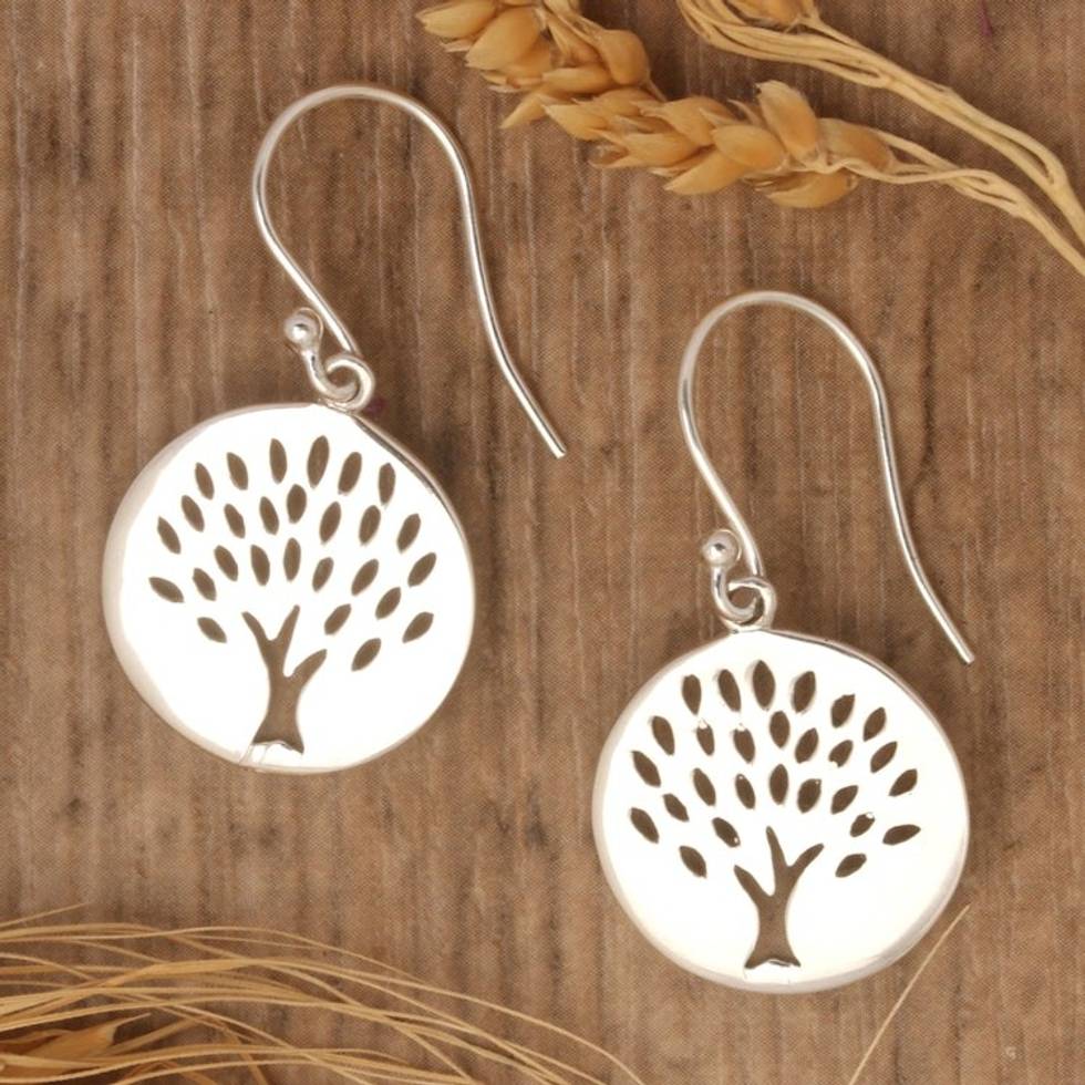 Sterling Silver Dangle Earrings with Tree of Life Motif 'Majestic Tree of Life' Item ID: 2671764863