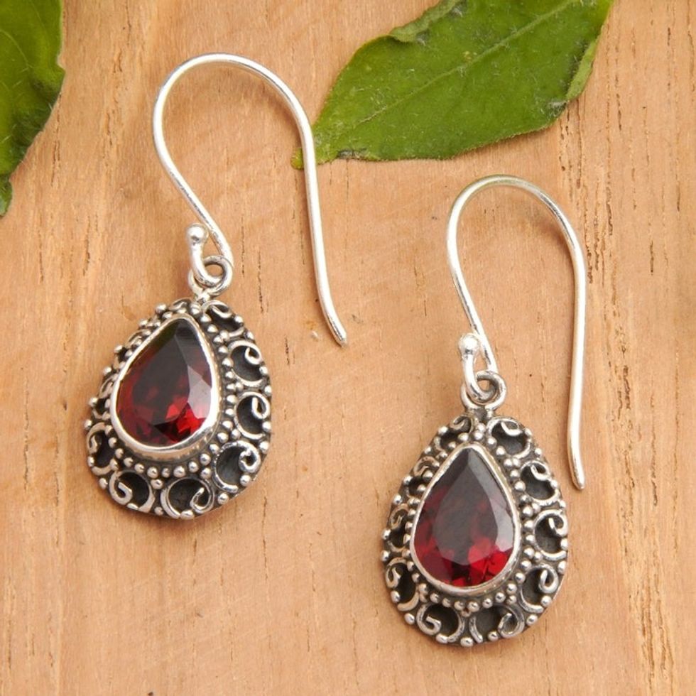 Sterling Silver Dangle Earrings with Two-Carat Garnet Gems 'Luxurious Winds in Red' Item ID: 2671669640