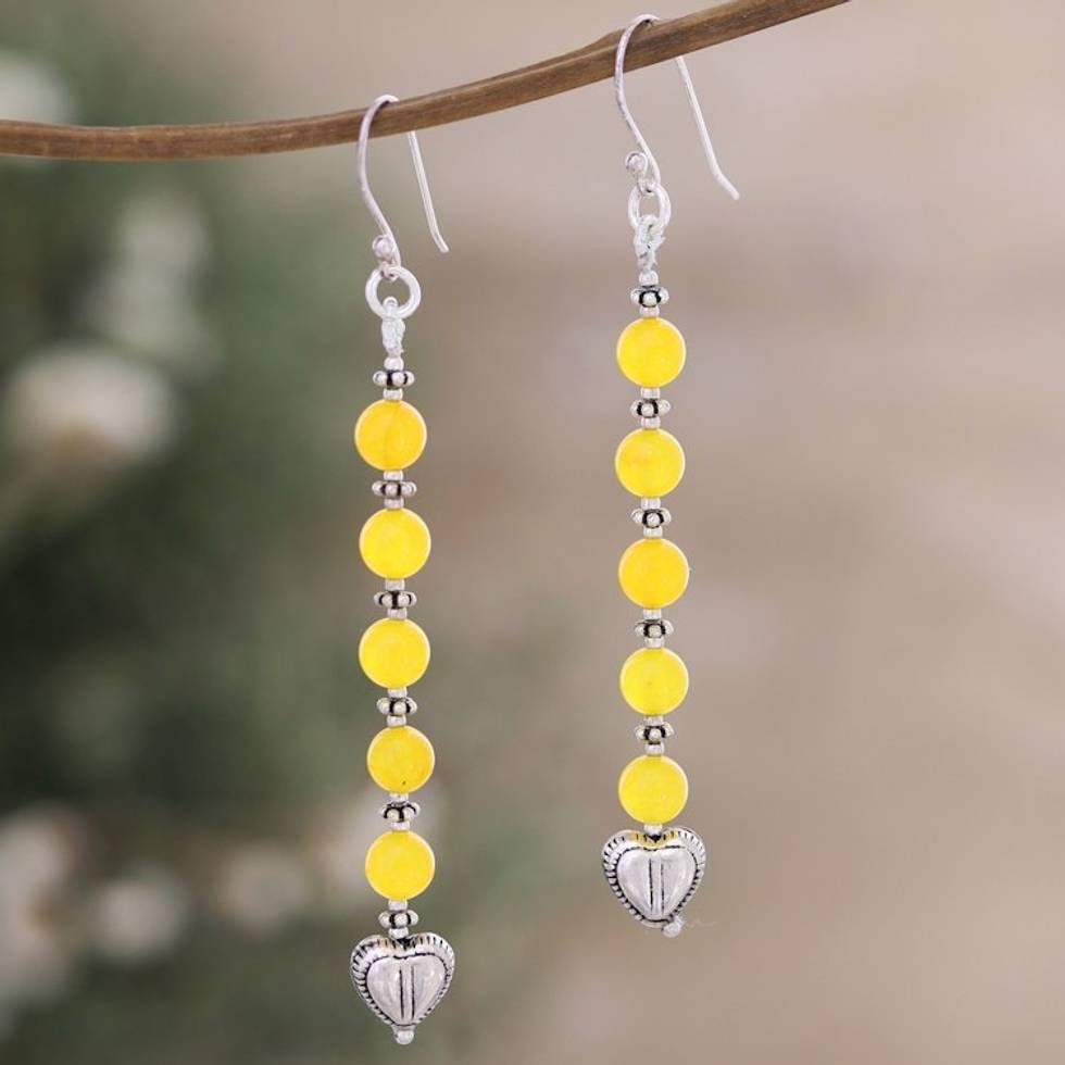 Sterling Silver Dangle Earrings with Yellow Onyx Beads 'Sunny Burst' Item ID: 2671786843