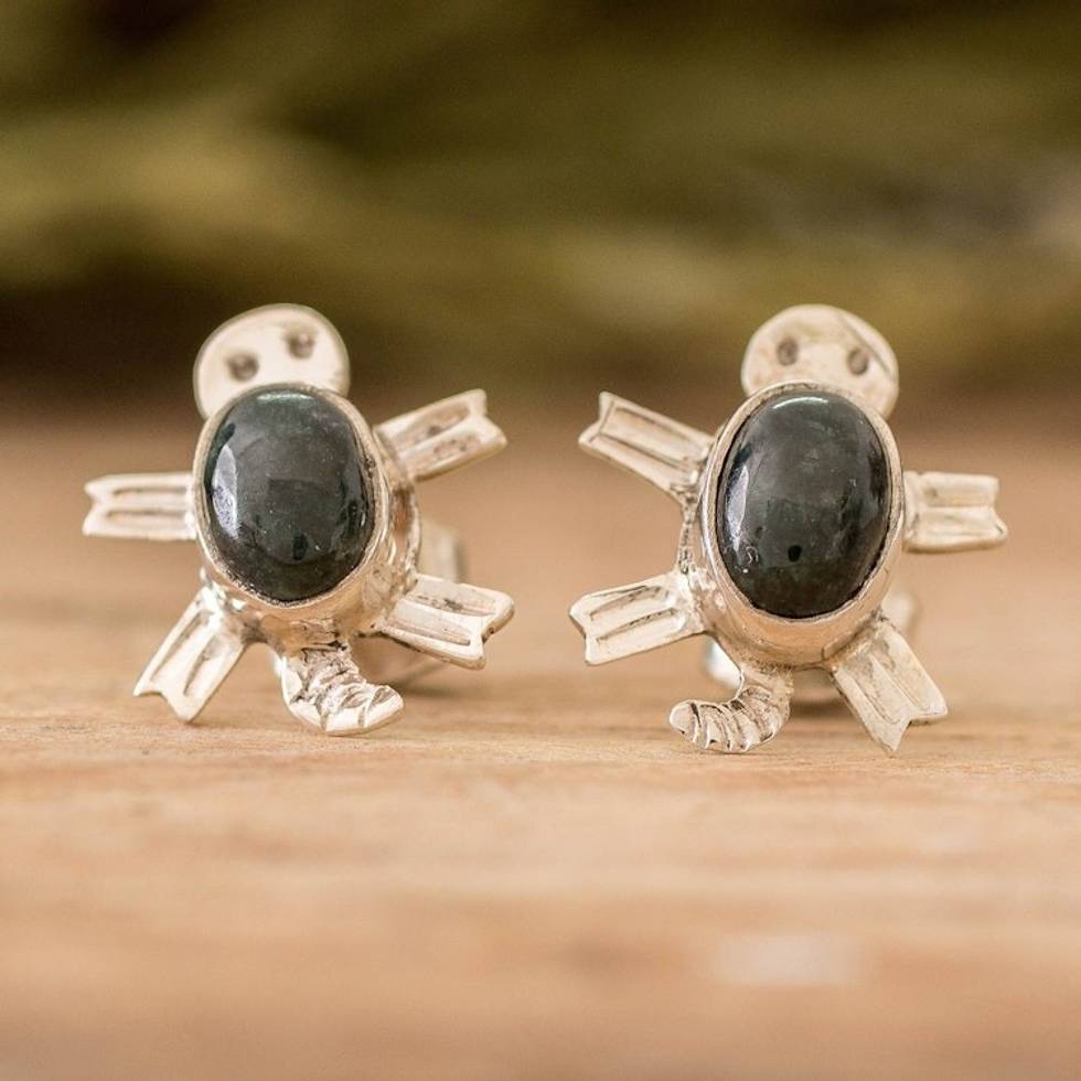Sterling Silver Dark Green Jade Sea Turtle Button Earrings 'Dark Green Marine Turtle' Item ID: 2671769113