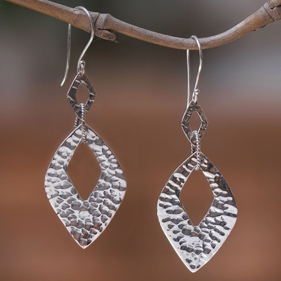 Sterling Silver Diamond-Shaped Dangle Earrings from Bali 'Hope Diamonds' Item ID: 2671748741