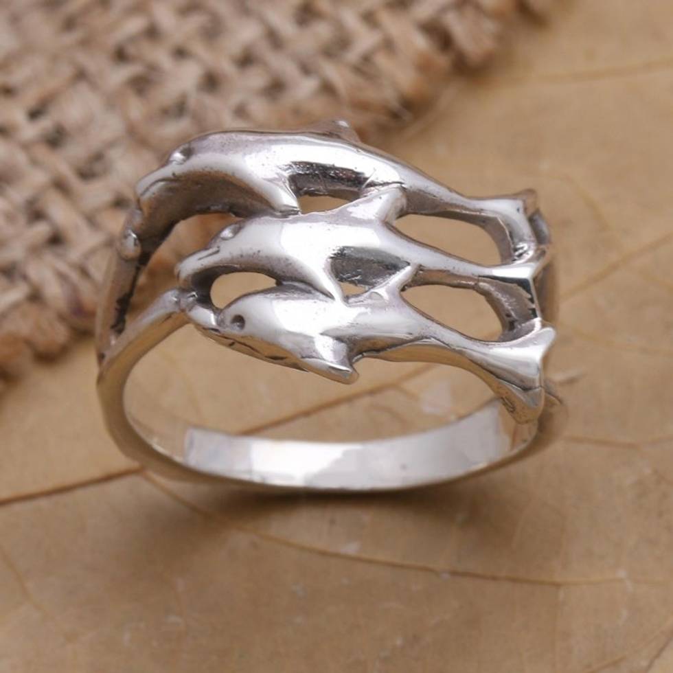 Sterling Silver Dolphin-Themed Cocktail Ring 'Synchronized Swimmers' Item ID: 2670122150