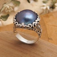Sterling Silver Domed Ring with Blue Cultured Mabe Pearl 'Palatial Splendor' Item ID: 2669921467