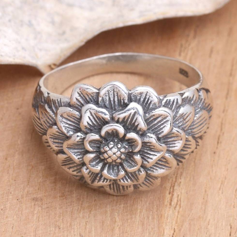 Sterling Silver Domed Ring with Floral Motif 'Bloom of Youth' Item ID: 2671748773