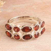 Sterling Silver Domed Ring with Multiple Garnet Stones 'Loving Glances' Item ID: 2669943745