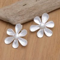 These earrings are beautifully simple. Soldered to a little silver hook is a sterling silver flower. The flower is dainty and three dimensional. These earrings go beautifully with the jasmine shimmer and silver breeze necklaces I have purchased from this artist previously. Thank you for sharing your talent with me!