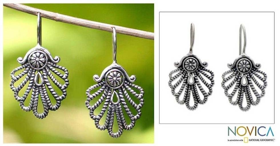 Sterling silver drop earrings 'Silver Fan' Item ID: 2671699072
