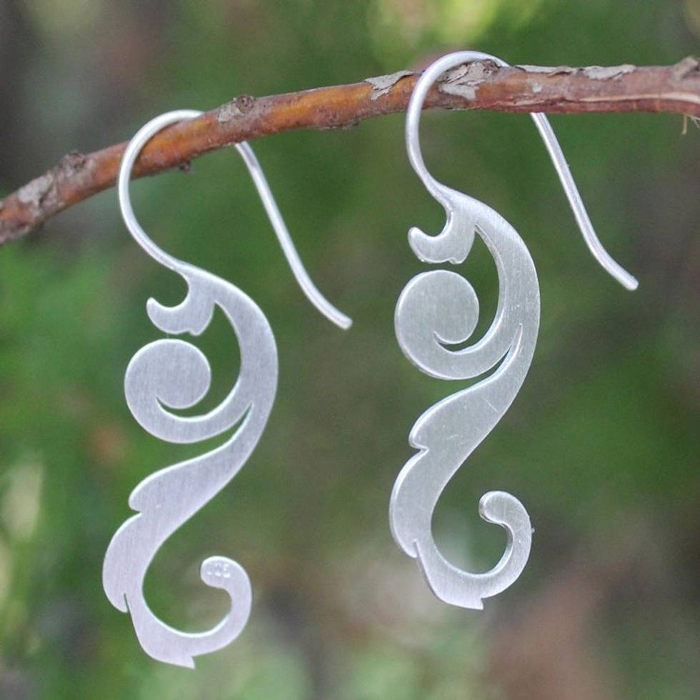 Sterling Silver Drop Earrings 'Thai Flora' Item ID: 2671803097