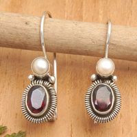 Sterling Silver Drop Earrings with Cultured Pearl and Garnet 'Perfect Duo' Item ID: 2671765007