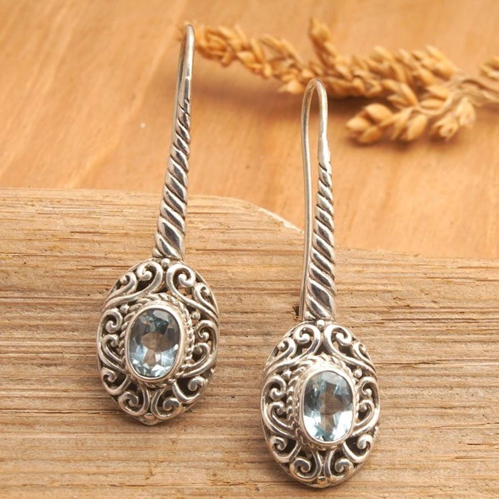 Sterling Silver Drop Earrings with Faceted Blue Topaz Gems 'Faithful's Charm' Item ID: 2669919802