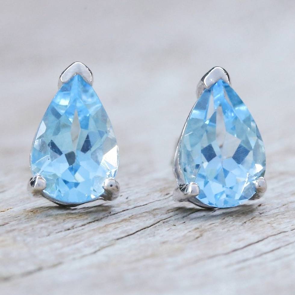Sterling Silver Drop Earrings with Pear Blue Topaz Gems 'Loyalty Blessing' Item ID: 2671797868