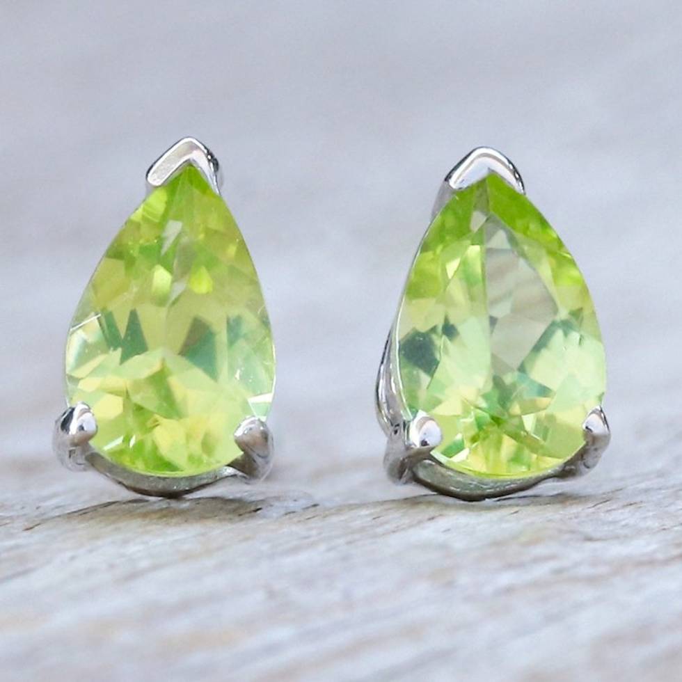 Sterling Silver Drop Earrings with Pear-Shaped Peridot Gems 'Fortune Blessing' Item ID: 2671797721