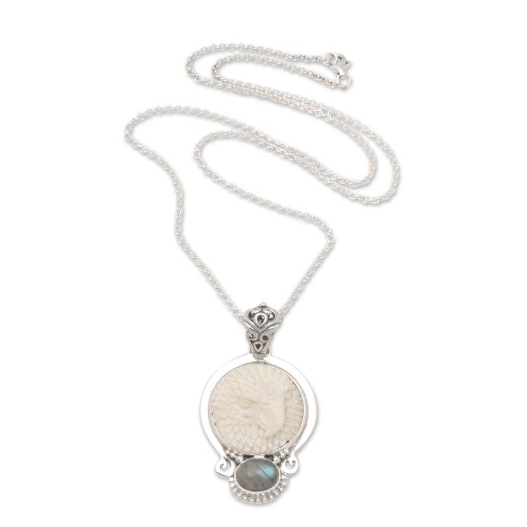 Absolutely beautiful. I've been looking for bone carved jewelry that was well done and affordable for a long time. This is it. The silver work is intricate and gorgeous. The stone is well set and shimmers. the face is just amazing. You expect it to wake up and smile at you. ,Mr. Buana your work is amazing. I look forward to purchasing more of your designs.,Its exactly as described. Looking forward to more designs from this artist. The work is impeccable.,I cant wait to see more items of this type.,third time this has shown up. Im tired