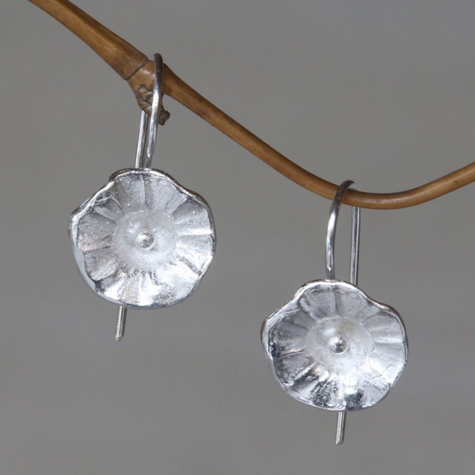 Sterling Silver Earrings Flower Jewelry Handmade in Bali 'Gentle Hollyhocks' Item ID: 2671702455
