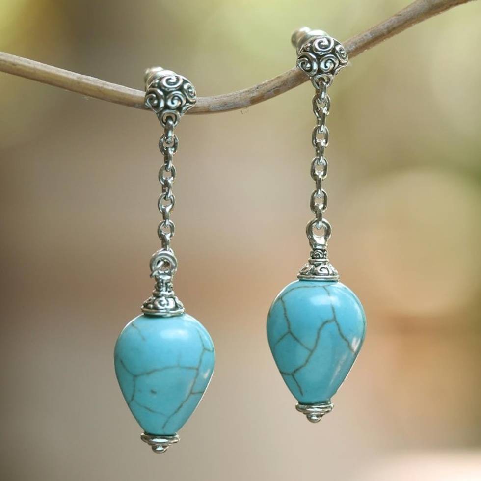 Sterling Silver Earrings with Blue Reconstituted Turquoise 'Blue Censer' Item ID: 2671737713
