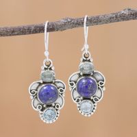 Sterling Silver Earrings with Blue Topaz and Lapis Lazuli 'Blue Alliance' Item ID: 2671793634