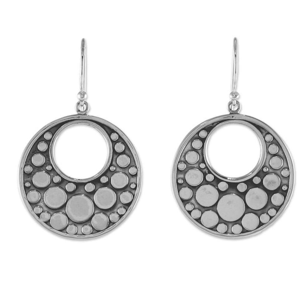Sterling Silver Earrings with Circle Motifs from Thailand 'Happy Bubbles' Item ID: 2671800993