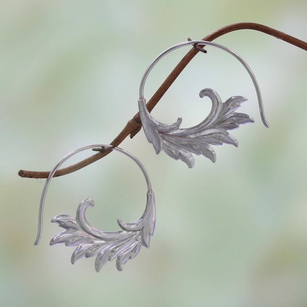 "These sterling silver half-hoop earrings feature a series of scrolls that resemble feathers floating down on a gentle breeze. Artisan Komang Wilis of Bali handcrafts these beautiful earrings."