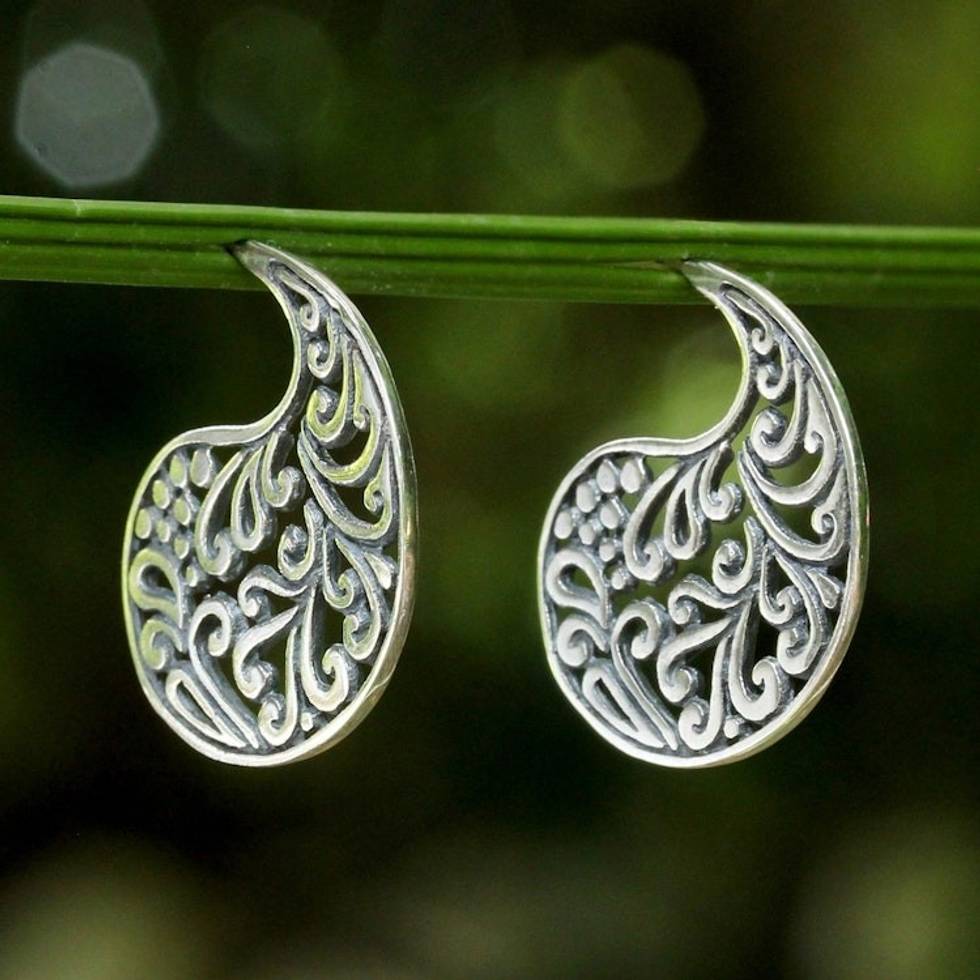 Sterling Silver Elegant Paisley Drop Earrings from Thailand 'Ornate Paisleys' Item ID: 2671800718