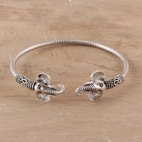 Sterling Silver Elephant Cuff Bracelet from India 'Elephant Glory' Item ID: 2671792347