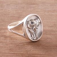 Sterling Silver Elephant Signet Ring from Bali 'Elephant Traipse' Item ID: 2676666792