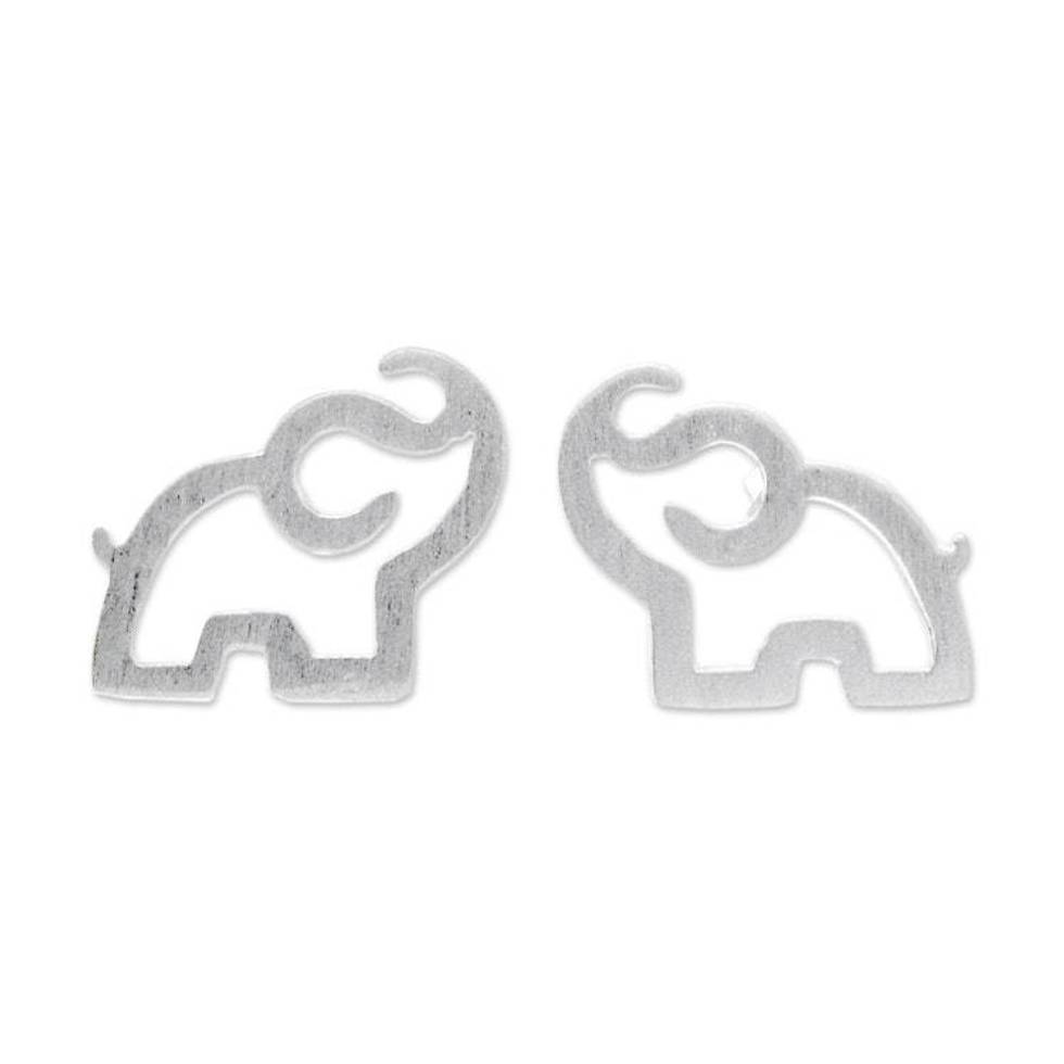 Sterling Silver Elephant Stud Earrings from Thailand 'Elephant Trumpet' Item ID: 2676651731