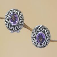Sterling Silver Faceted Amethyst Button Earrings from Bali 'Deep Allure' Item ID: 2671736839