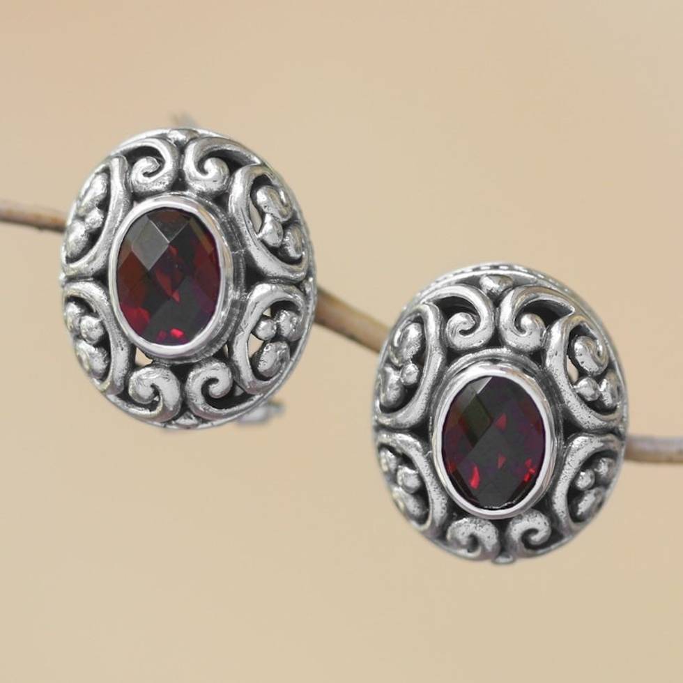 Sterling Silver Faceted Garnet Button Earrings from Bali 'Deep Allure' Item ID: 2671736871