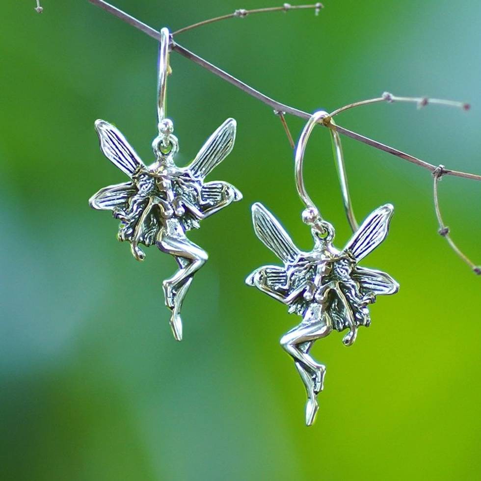 Sterling Silver Fairy Dangle Earring from Bali 'Forest Fairies' Item ID: 2671747283